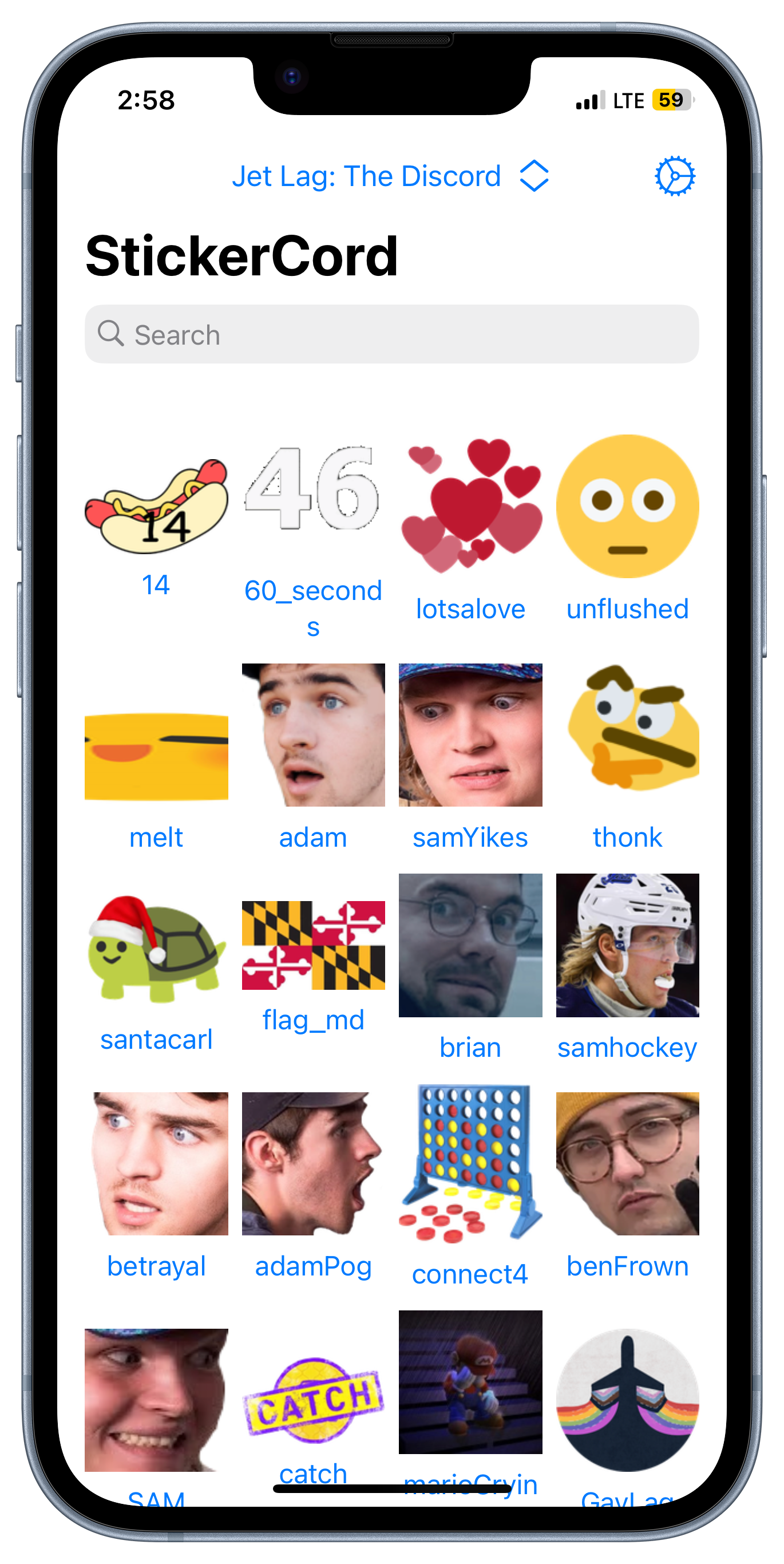 An iOS, iPadOS, and Mac app that allows users to use a Discord server’s stickers and emojis outside the Discord app. On iOS and iPadOS, users can also use the emojis and stickers as iMessage stickers.